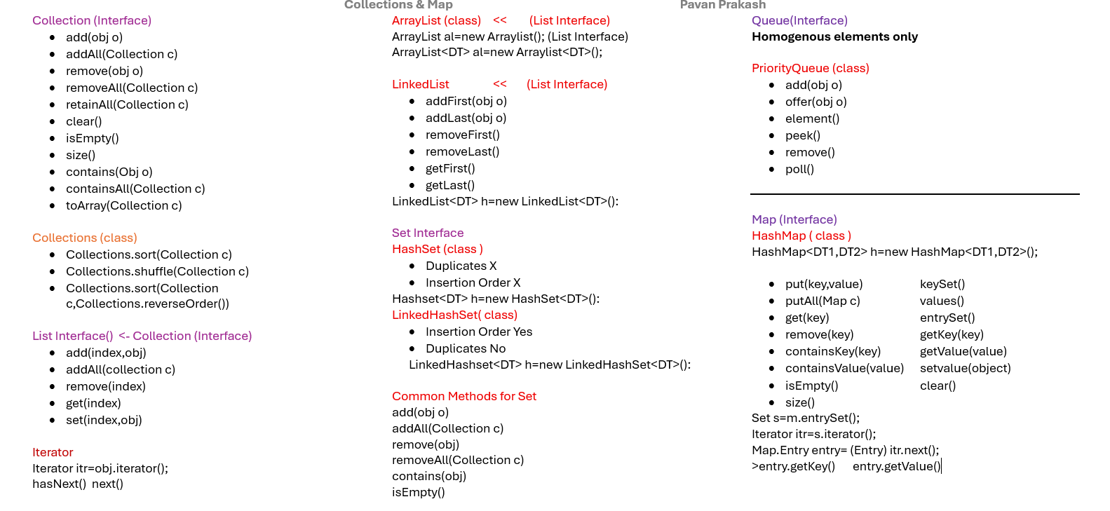 - Java : Click here (Crash Course) | π₯ Download Java Collections CheatSheet